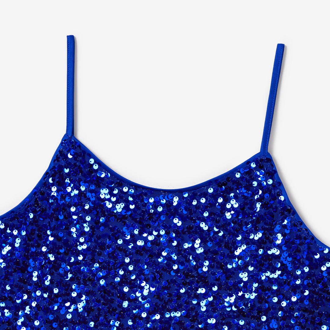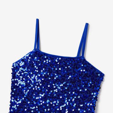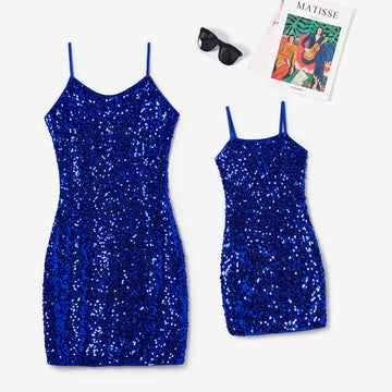 Product Introduction: Adjustable shoulder straps and sparkling blue sequins make this mother-daughter dress perfect for casual outings or festive occasions.