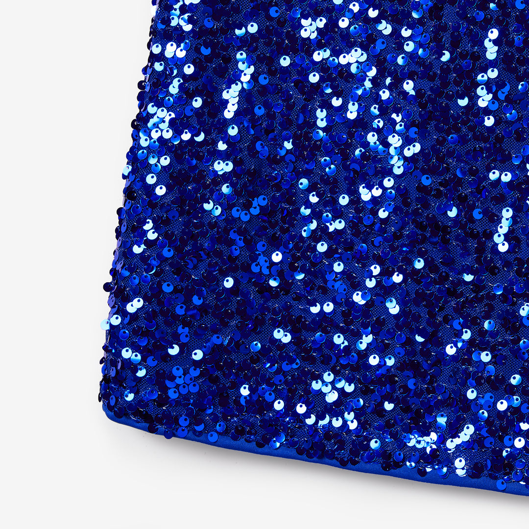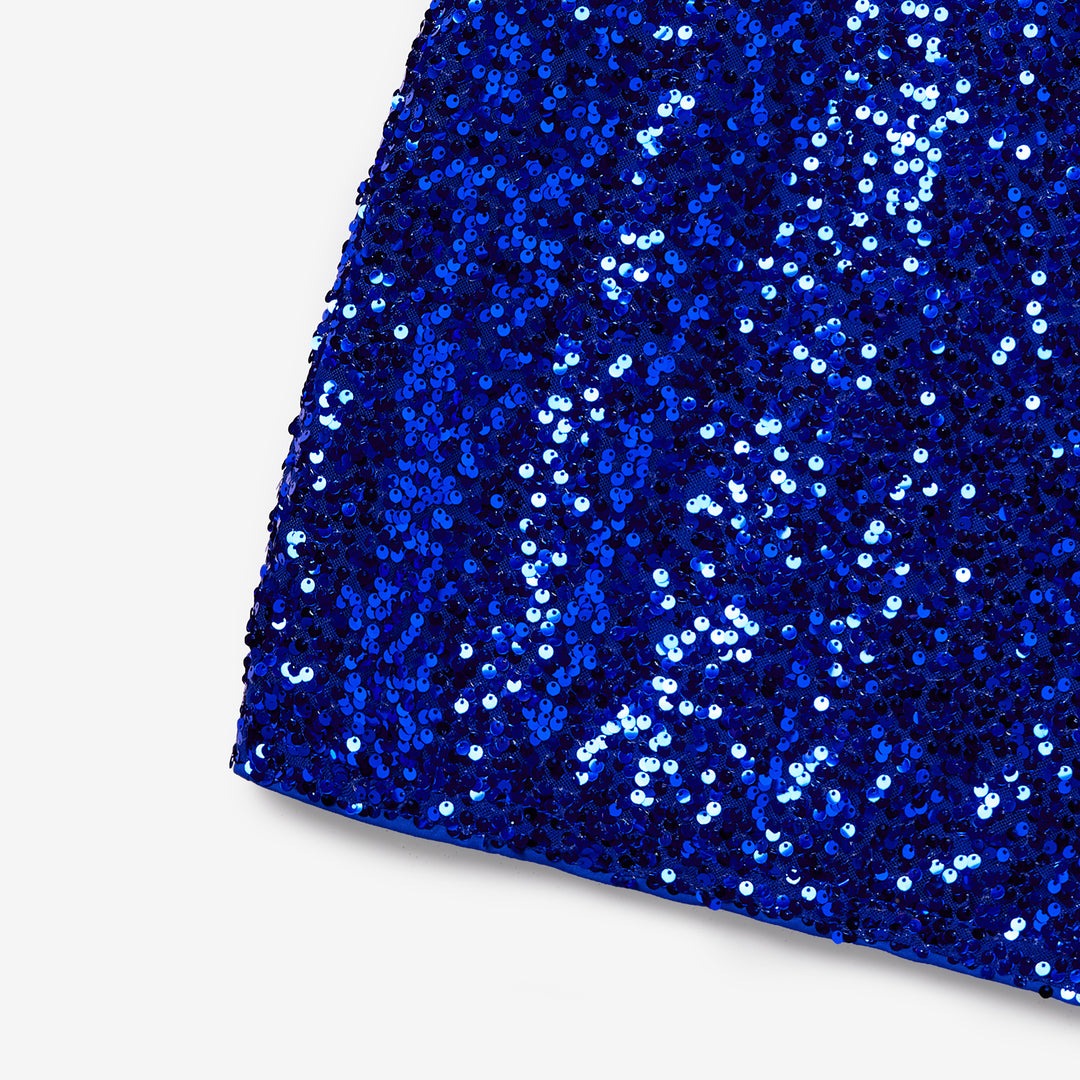 * Style: a sparkly sequin dress in a vibrant blue color.