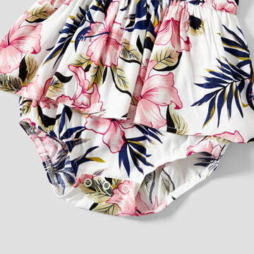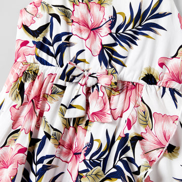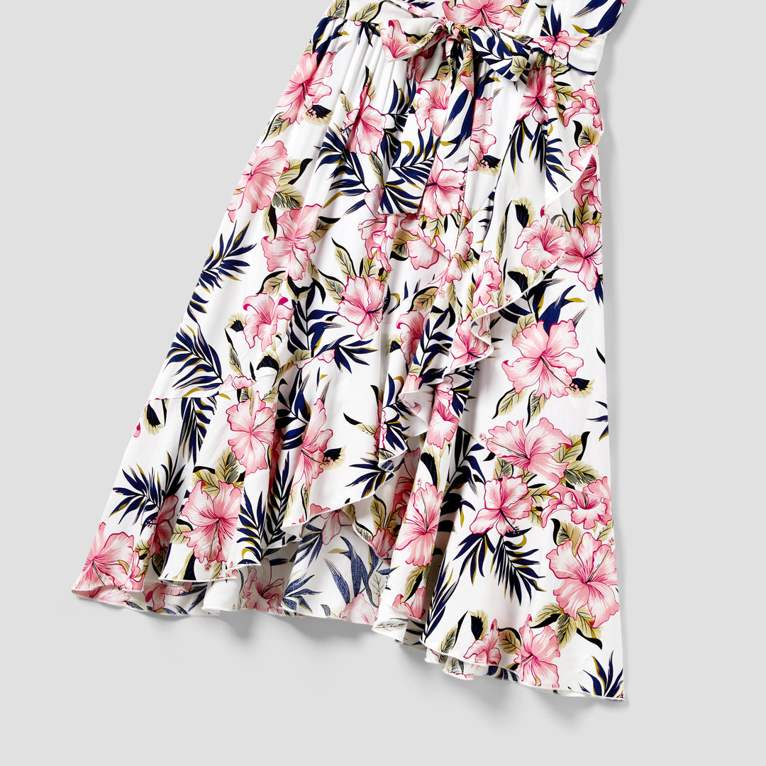 Family Matching Floral Wrap Bottom Strap Dress and Colorblock T-shirt Sets